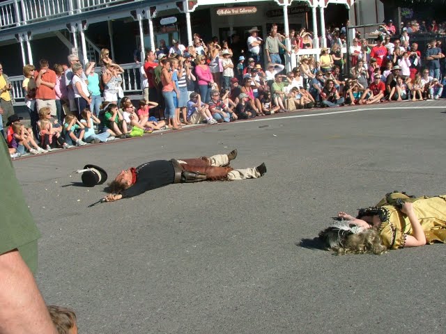 – Sitting on the balcony of the Town Square Tavern and making fun of tourists sporting cowboy hats and fanny packs watching the “shootout” on the town square.