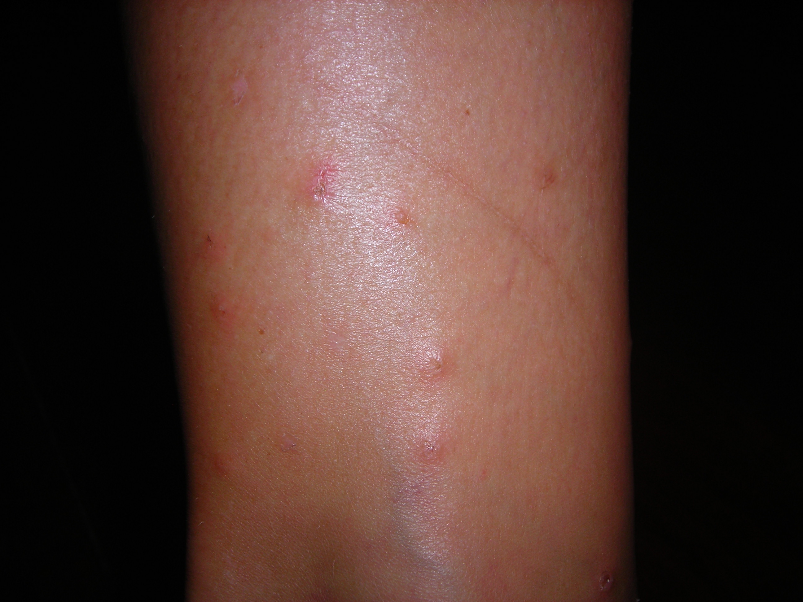 Here is a shot of my leg when I was traveling around Panama with friends and I got EATEN ALIVE by sand fleas.