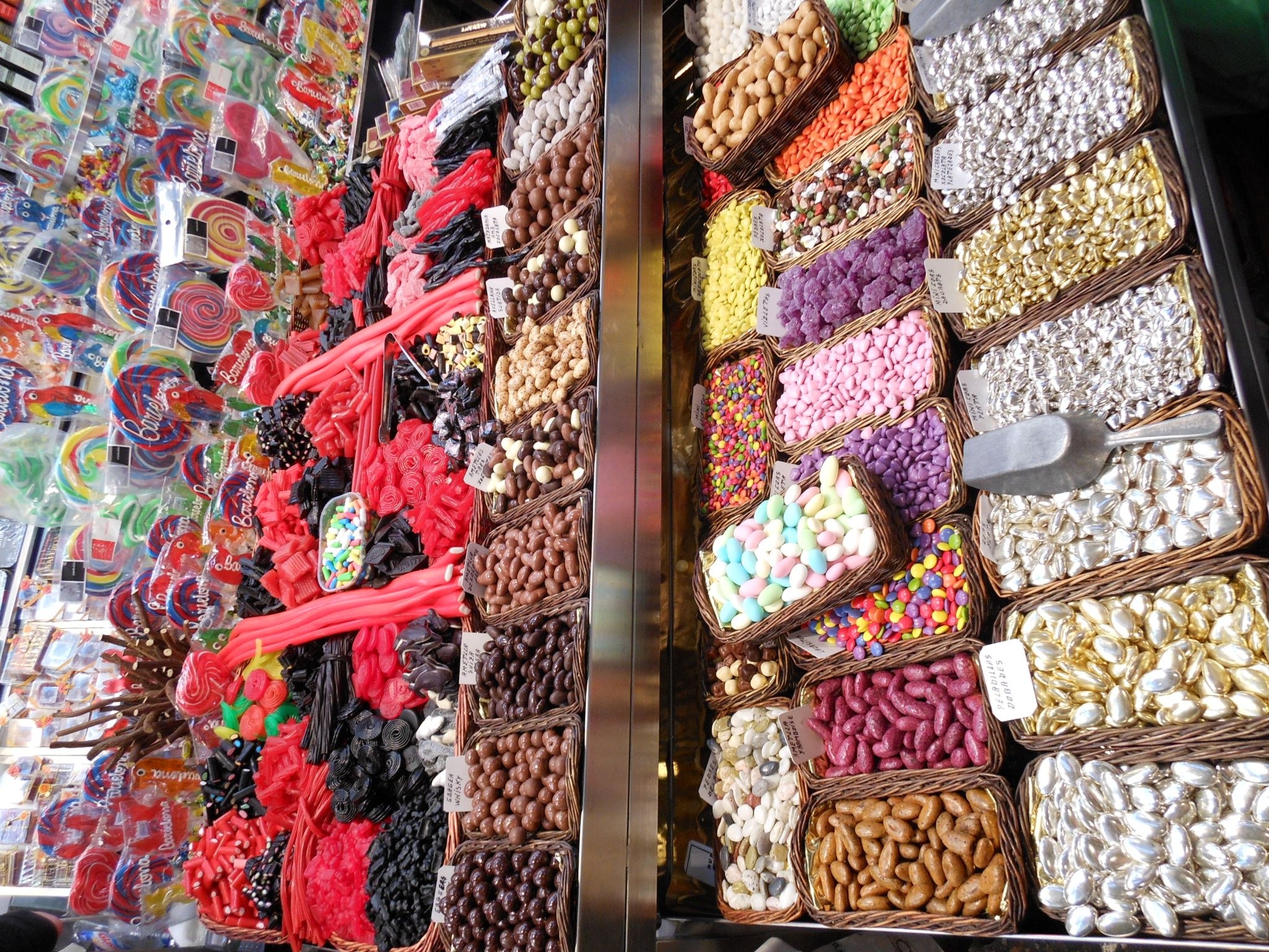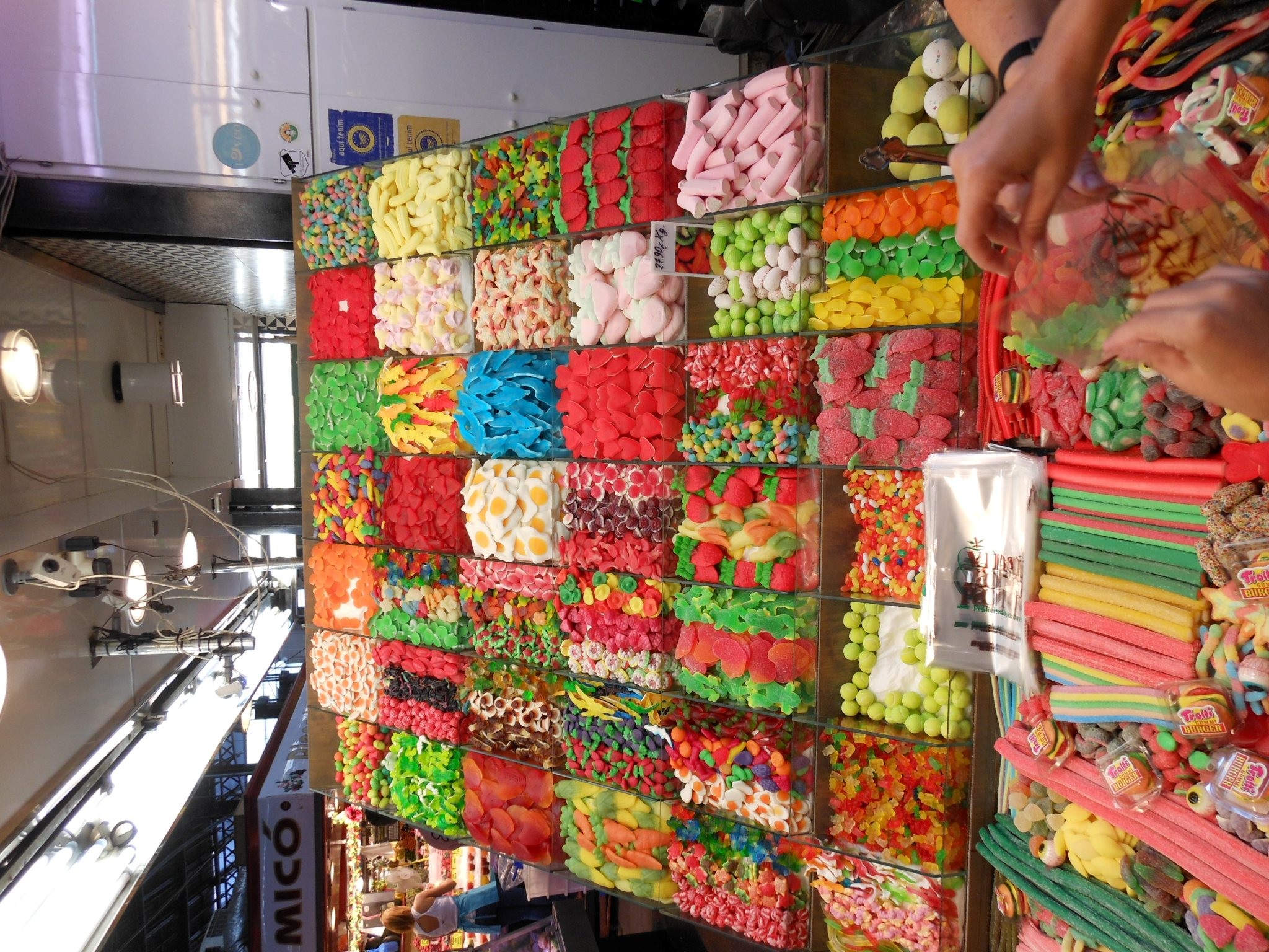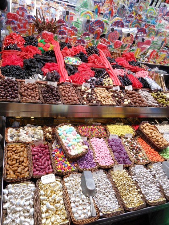 The next day started off with a bang, as we had coffees and headed to the Mercat de la Boquería.  It is basically a huge market where you can literally buy anything. Megan bought some exotic spices like saffron while I stuck to fresh fruit and of course…candy!