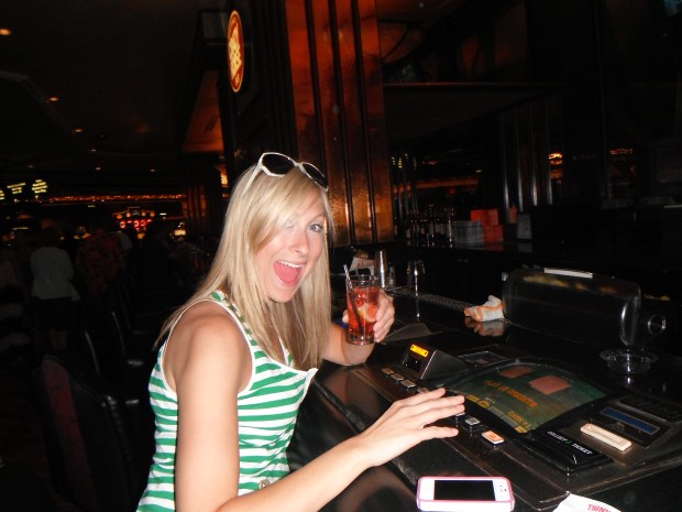 The only drama we encountered on the trip was when we were playing video blackjack (yet again) at the MGM Grand. After I had gambled away my $5 bank roll, I turned my head and chatted with Bryan in the seat next to me for a few minutes. I had stupidly left my iPhone on the bar and while my head was turned, it was swiped. Some horrible robber now has my white iPhone 4 in mint condish. We looked everywhere, asked everyone at the bar and reported it to hotel security and turned up nothing. It was gone. After some tears and a new found hatred towards casinos, Bryan lovingly bought me a martini and some candy. That’s better :).