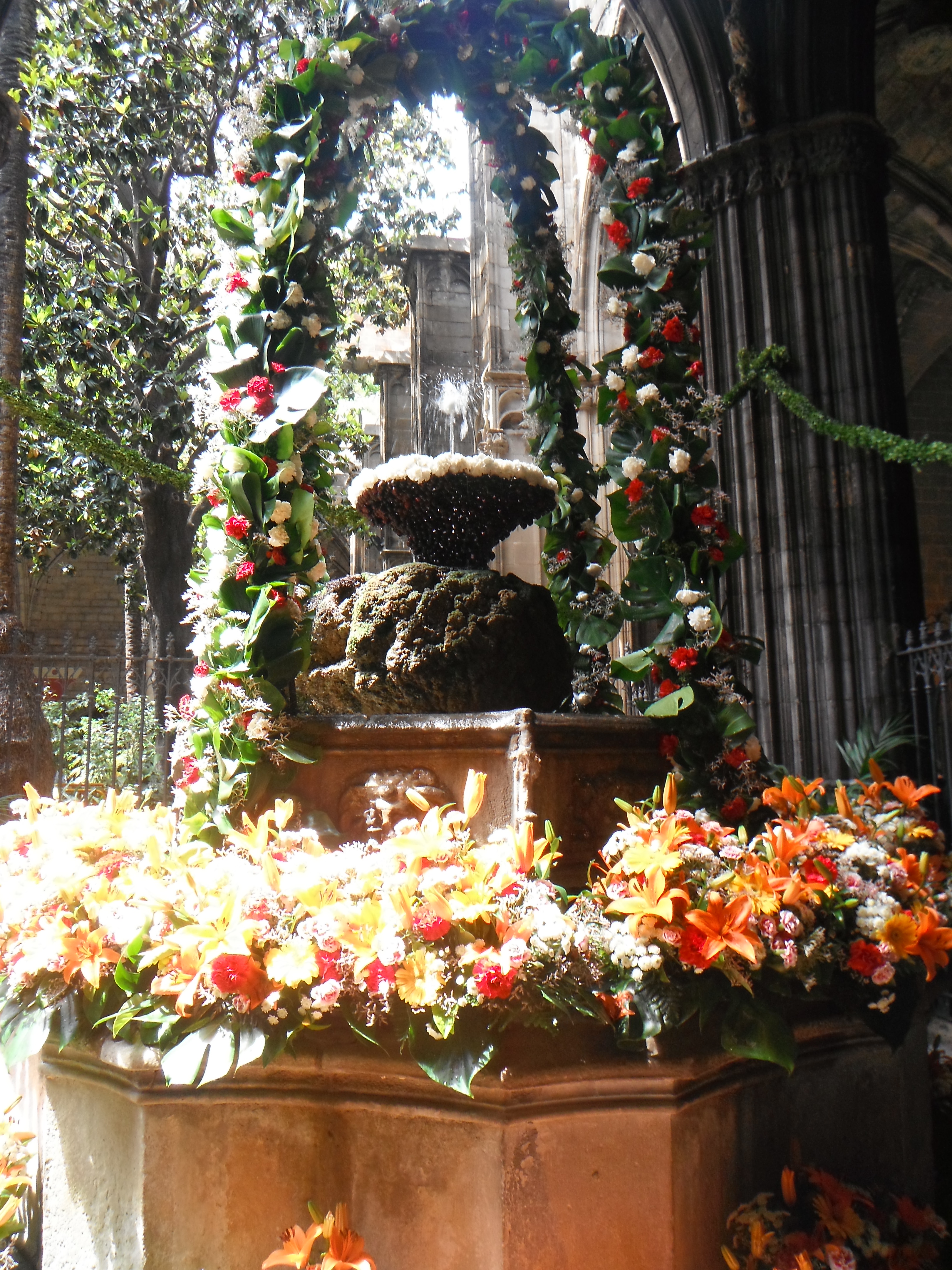 Then we reached the Barcelona Cathedral, which was absolutely breathtaking. This particular cathedral had a beautiful courtyard area with amazing flowers, statues and fountains.