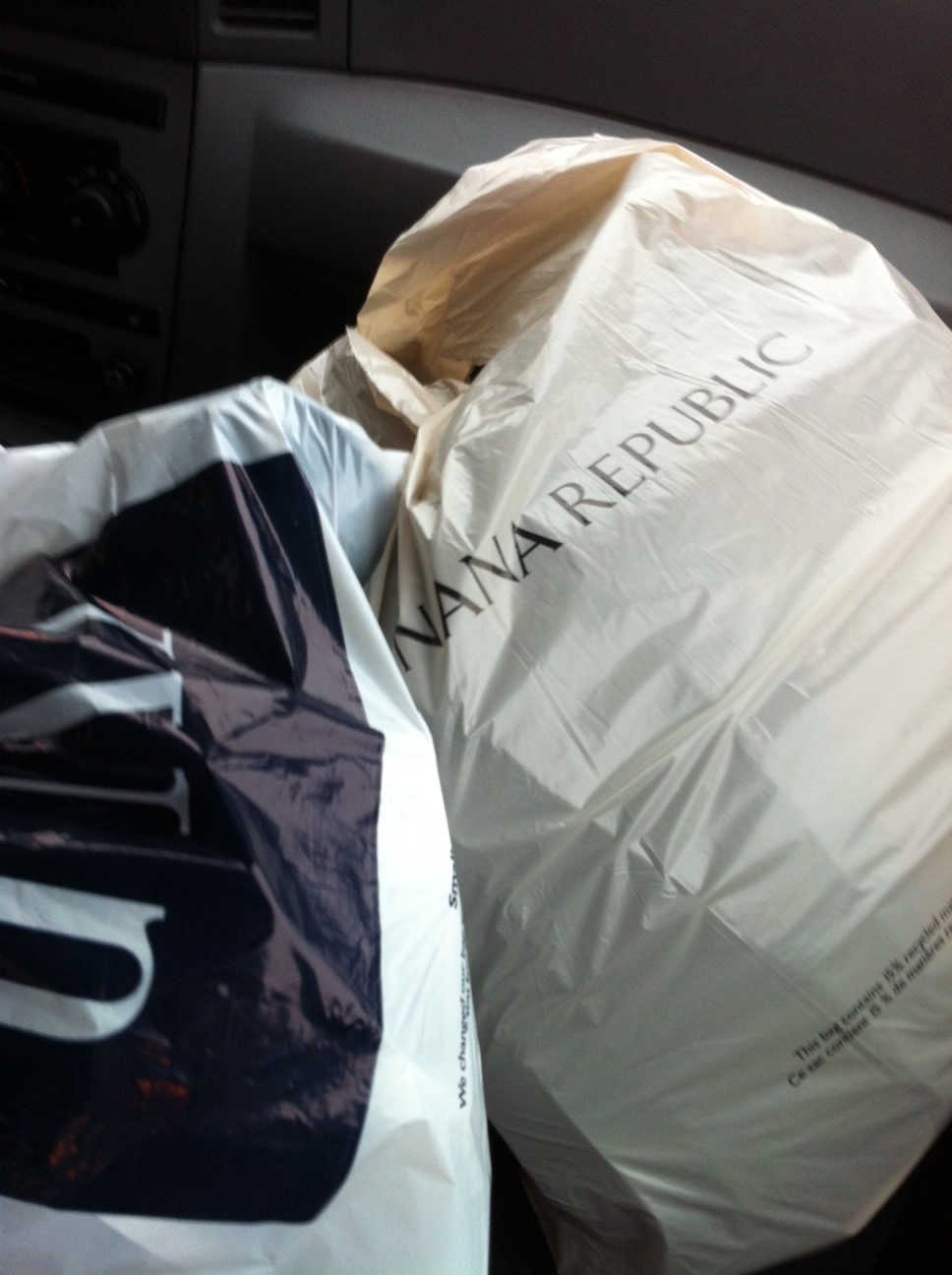 After the haziness faded a bit, I decided it was time to go shopping at the outlet mall. I had two extra 40% coupons for Gap and Banana that were burnin a whole in my pocket. The odds of getting Bryan to agree to a shopping trip with me are about 10,243 to 1 so I was surprised when he said it sounded like fun.
