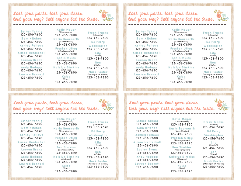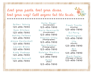 Here is a fake phone number version of the one that she made for me! (Sorry y’all, you can’t prank call my wedding team).