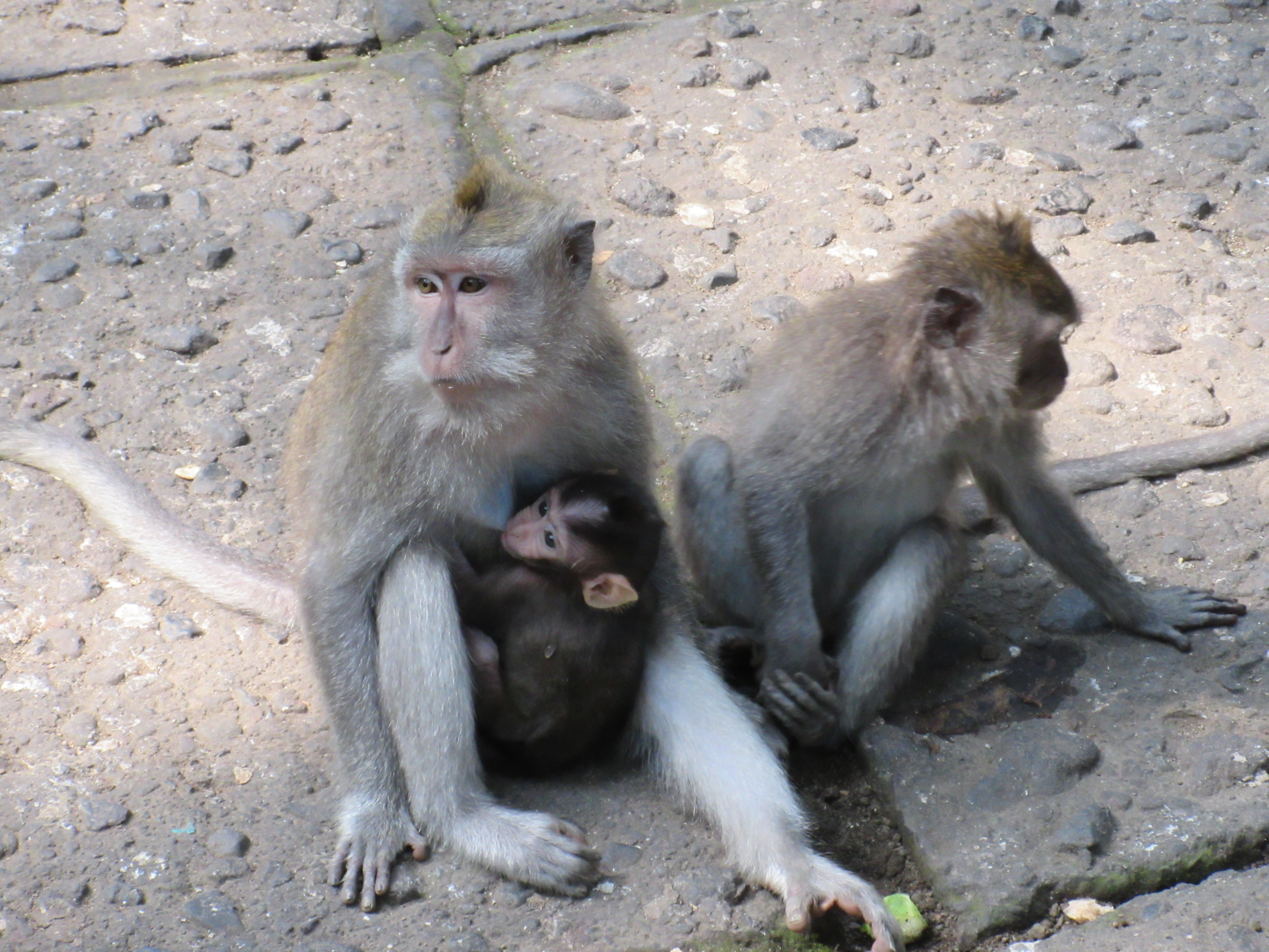 Once we arrived in Ubud I was positively TICKLED at the prospect of visiting Monkey Forest, a small bit of forest (jungle, really) inhabited by TINY BABY MONKEYS. Oh yes. Being a lover of any small mammal, I was simply in awe. Little monkeys, old and young, just roaming freely around a few acres of land, bein’ cute. You could buy mini bananas (MINI) and feed them but I sustained, as I didn’t want a  baby monkey bite.