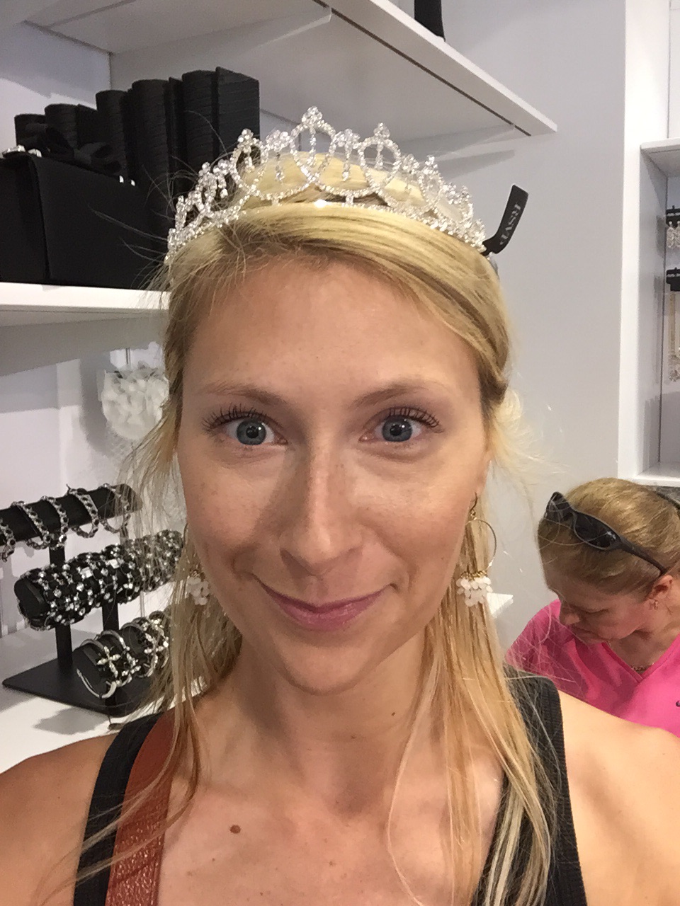 I try on tiaras at Charming Charlie with absolutely zero f*ucks given and shamelessly take a selfie. That woman in the back? WAS TOTALLY STARING AT ME.