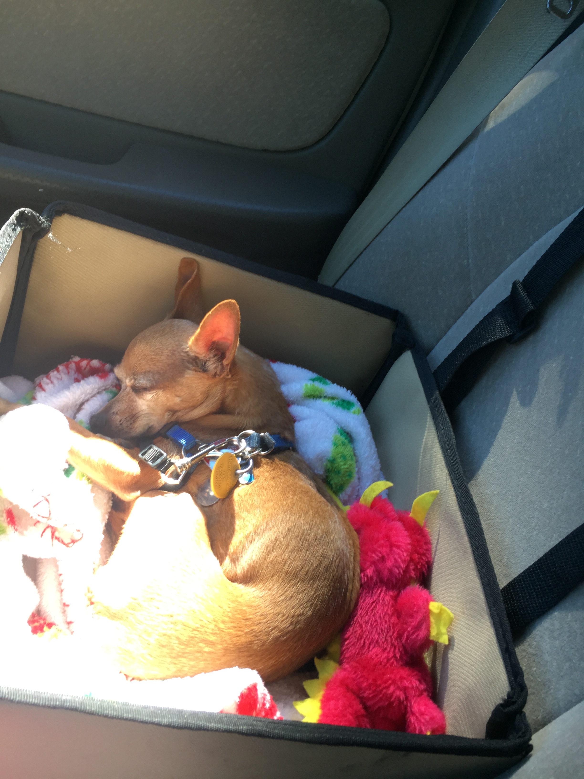 The next day I woke up, drank coffee and ate cereal with measuring spoons (again, not everything has been moved to the new house). I threw Henry’s chewie around for a while and then he curled up in a sunny spot. Then we went for a little walk!