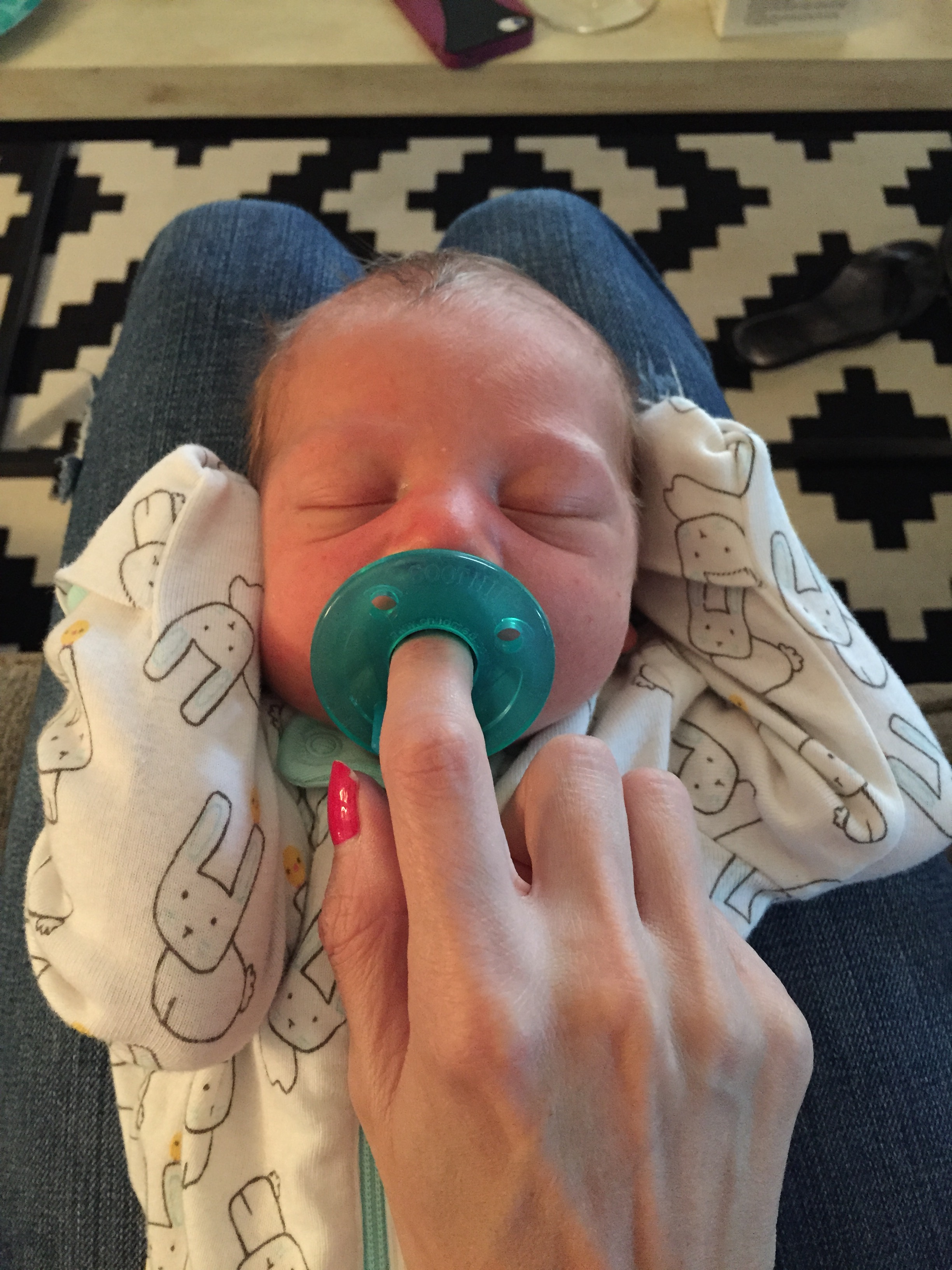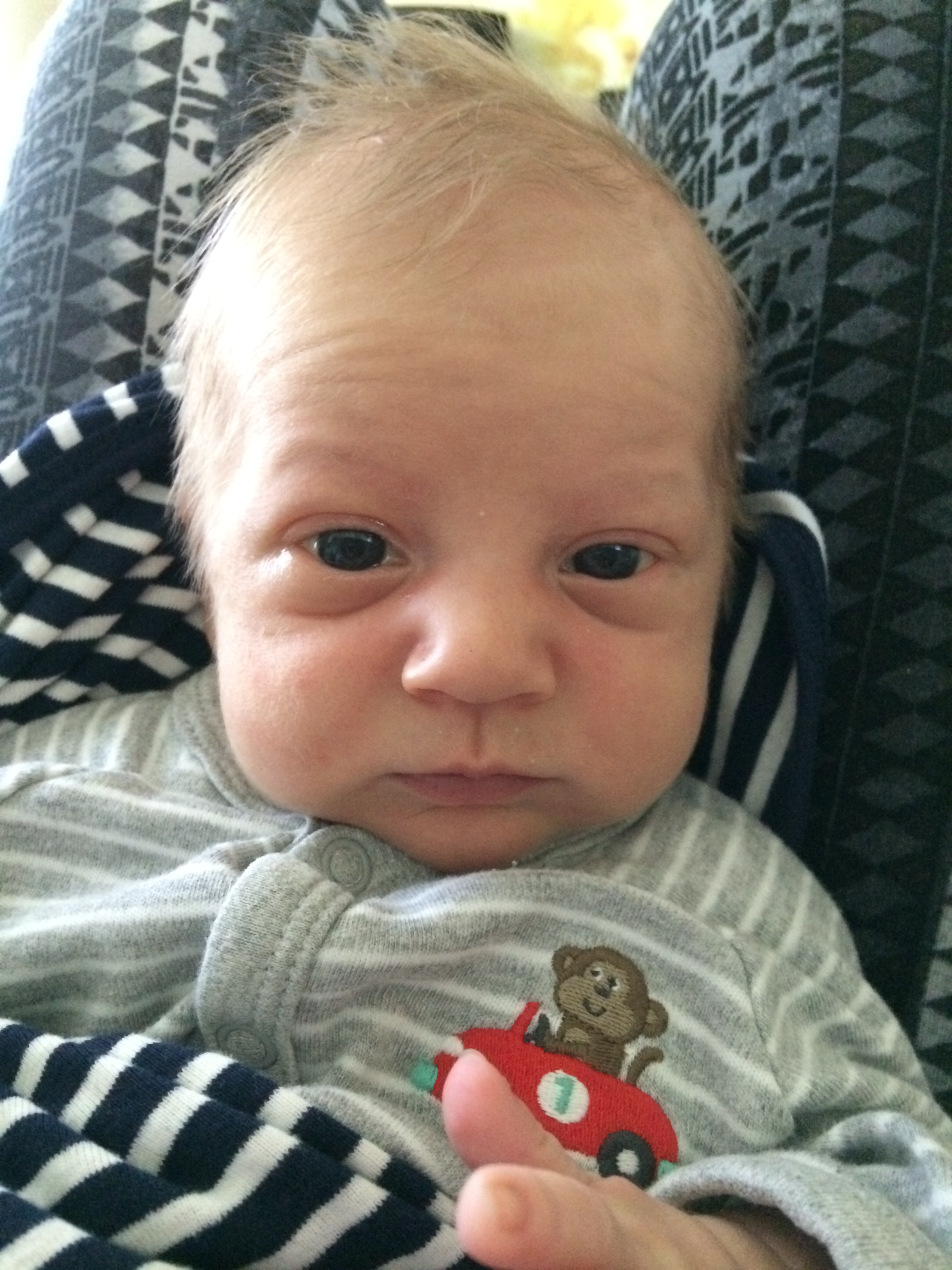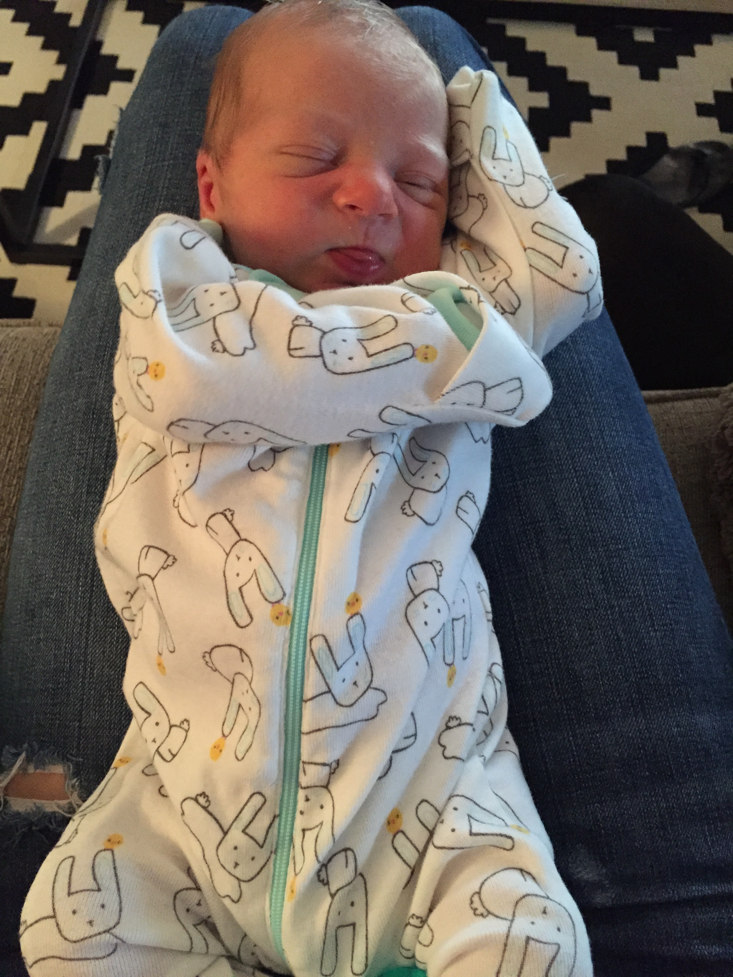 Tate is very small. I don’t know what I was expecting – like an 8 pound BB is big? His head is pretty much totally round and he has a little bit of blonde hair. He has all ten fingers and ten toes and his skin gets red when he cries. He loves to wave his hands around and most of the time, they are right next to his mouth or on either side of his head. His legs get all stiff when you change his diaper and he has that gross belly button clip thingy so you have to fold the diaper down a little. I could talk about this tiny little human forever, I guess.