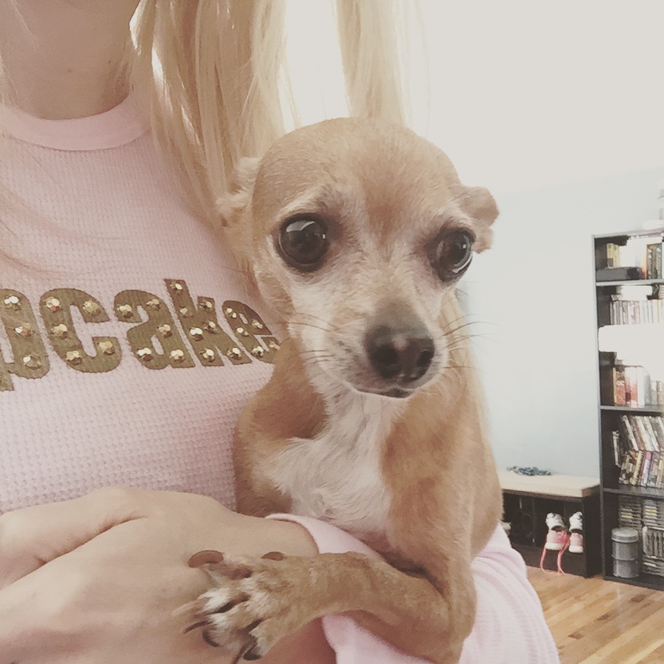 And alas, I had to give little Henry back to his mom and dad. It was a bittersweet day because I was sad not to see his little tiny wagging body at the door everyday, but happy to see him reunited with his humans. The last day I had him, I took him for a nice long walk and wore a heck of an outfit: