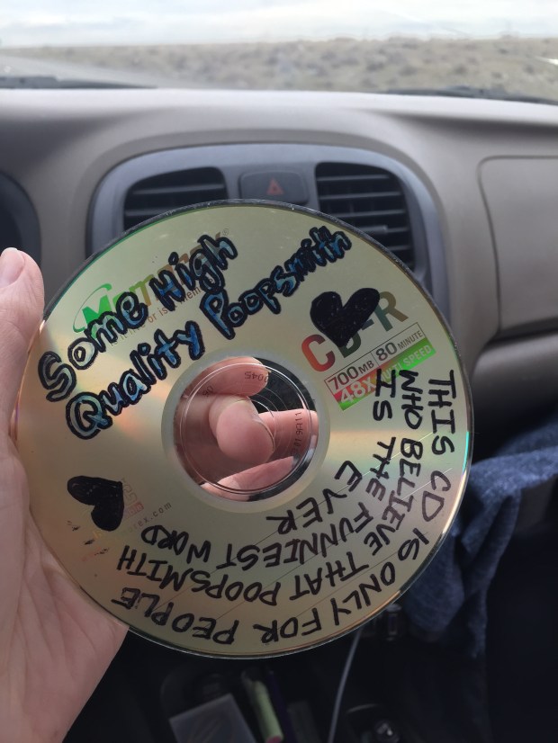I discovered this in the CD case in my car (yes, like in High School) behind another CD and of course listened to the whole thing on the way to Kennewick. Lots of Blink 182, some Mandy Moore. you know.