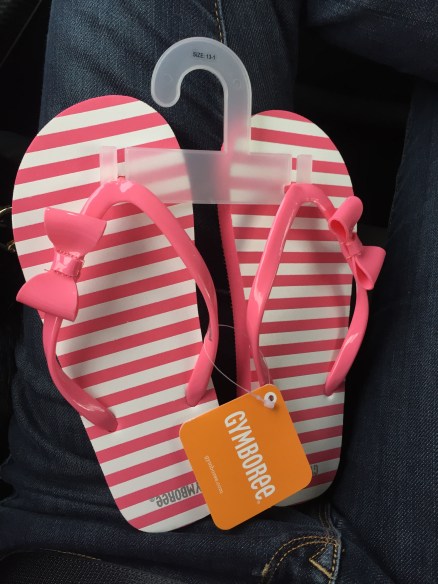 While at Columbia Center, I hit a jackpot of a sale at Gymboree for E and got her a bunch of awesome summer stuff for Hawaii including these flops which are to die.