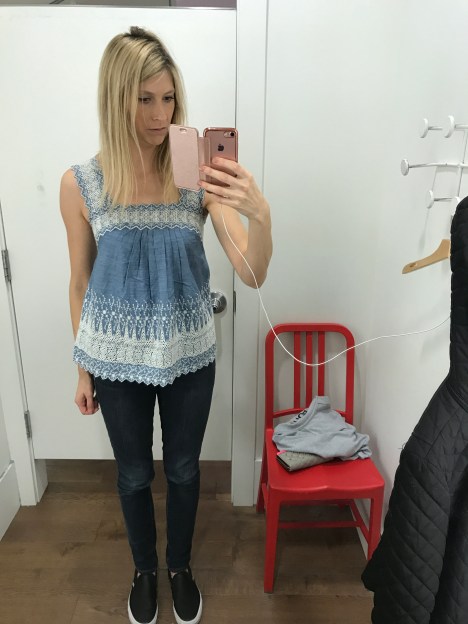 It’s magical because I can purchase embroidered chambray sleeveless shirts from the Gap, that I have been eyeing since March…and on super sale no less.