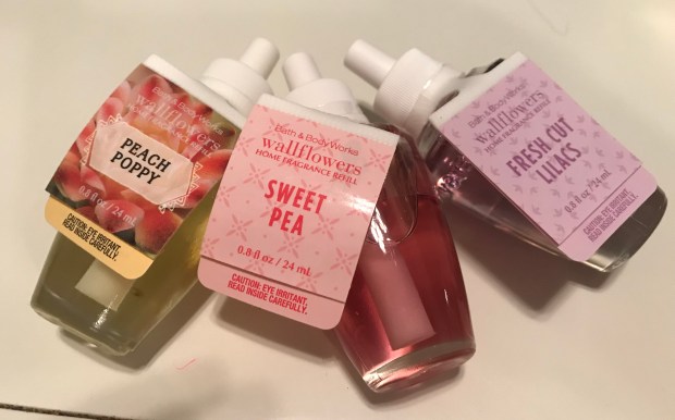 This made the wallflowers I bought just about $1.60 each. Aw yiss. In addition to the lovely spring scents below, I also got Marshmallow Fireside which is currently plugged in!