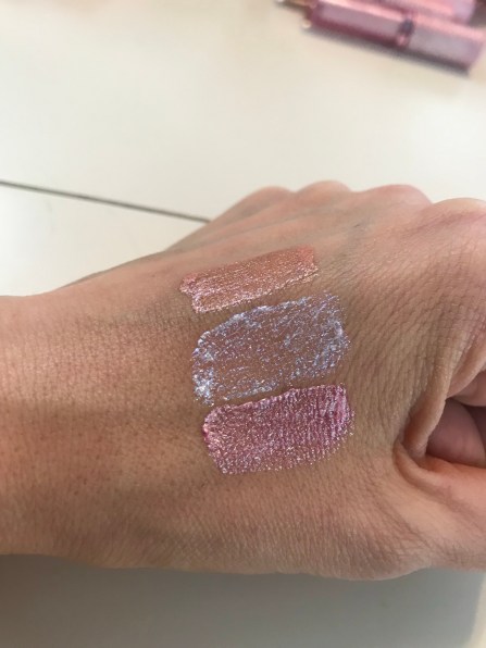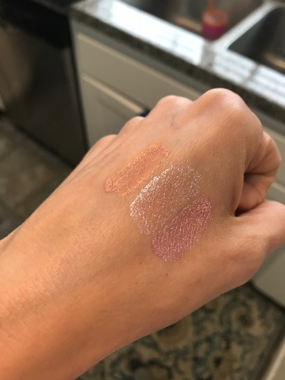 I really love this product. All three colors are really gorgeous in their own way. They add a fun, glitzy touch to the lips and would be gorgeous over a variety of different lip colors. On their own they might come off a bit patchy but not anything terrible. I will get tons of wear outta these!