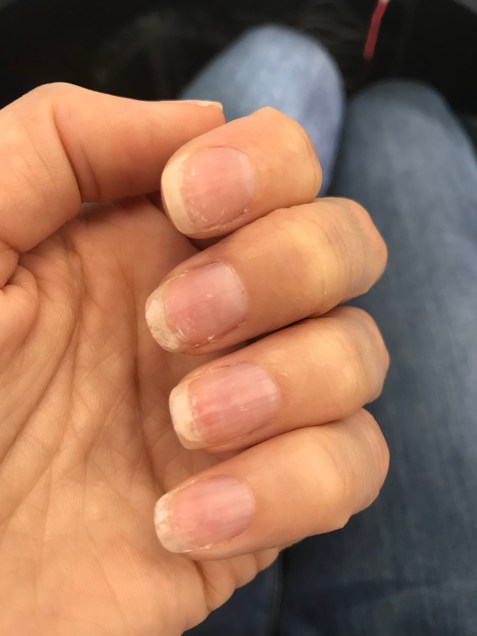 Not even two weeks later, and my nails had grown out SO much that I had a good 1/8 of an inch of grow out! I had to use some soak-off remover the other night to remove this (so apologies for the state of my nails) but check out this growth!