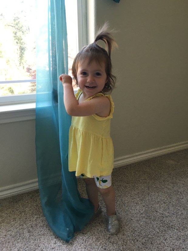 We took down this lovely turquoise swag from the master bedroom and I may use the fabric to make a Princess Jasmine costume! Also, just look at this little tike!