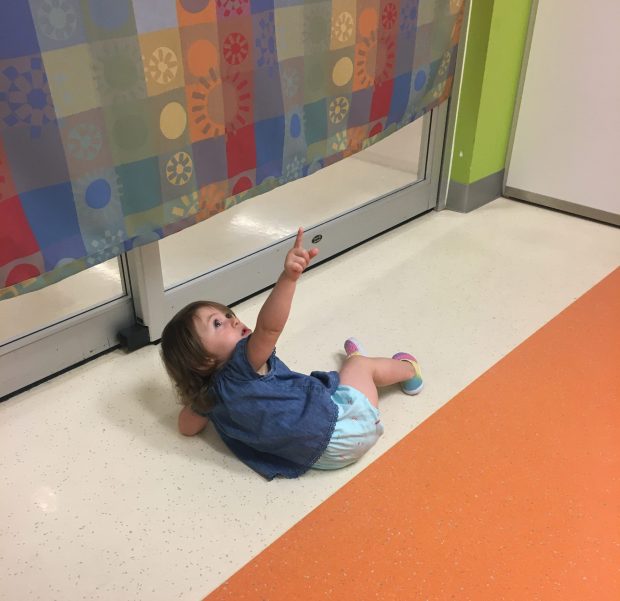 Favorites have included scissors, phone cords, wallets, mommy’s pill bottles, sharpies and any other item we say no to. Preferred activities are picking at the mole on my clavicle (I had to have it removed), writing on the walls, the floor, herself and dipping her hands into the fish tank and then licking them.