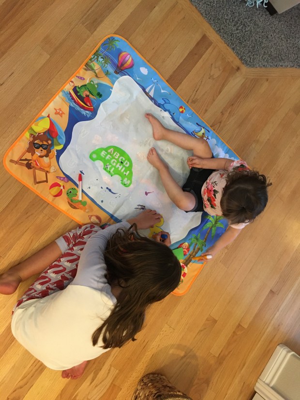 She relishes at the sight of any kind of marker, ballpoint pen or other coloring apparatus. And after several walls scribbled in crayon and legs marked with pen, I got the girl an aqua doodle water mat on Amazon. Both her and her older sister love it and it was $12. It is this one if you are interested.