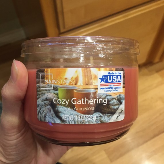 I have tried several of the $3.33 Mainstays candles from Walmart (Mulled Cider is a fave) and this one is top notch! My only complaint with these candles is how quickly they burn down, but hey, they cost less than a pint of Ben & Jerry’s! The notes are “a woody and spicy fragrance that combines a warm blend of fresh black peppercorn, golden birch, Patchouli, smoked guaiac and rich suede accord create a cozy fall cocoon.” It smells so much more expensive than it is!