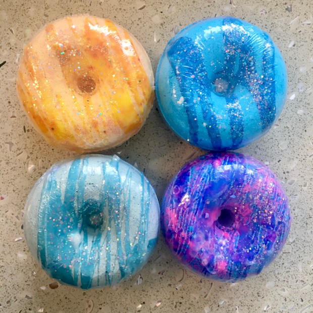 YOU GUYS. These are huge, donut-shaped bath bombs that smell like cotton candy!! I am so beyond impressed with both the size and quality of these products.