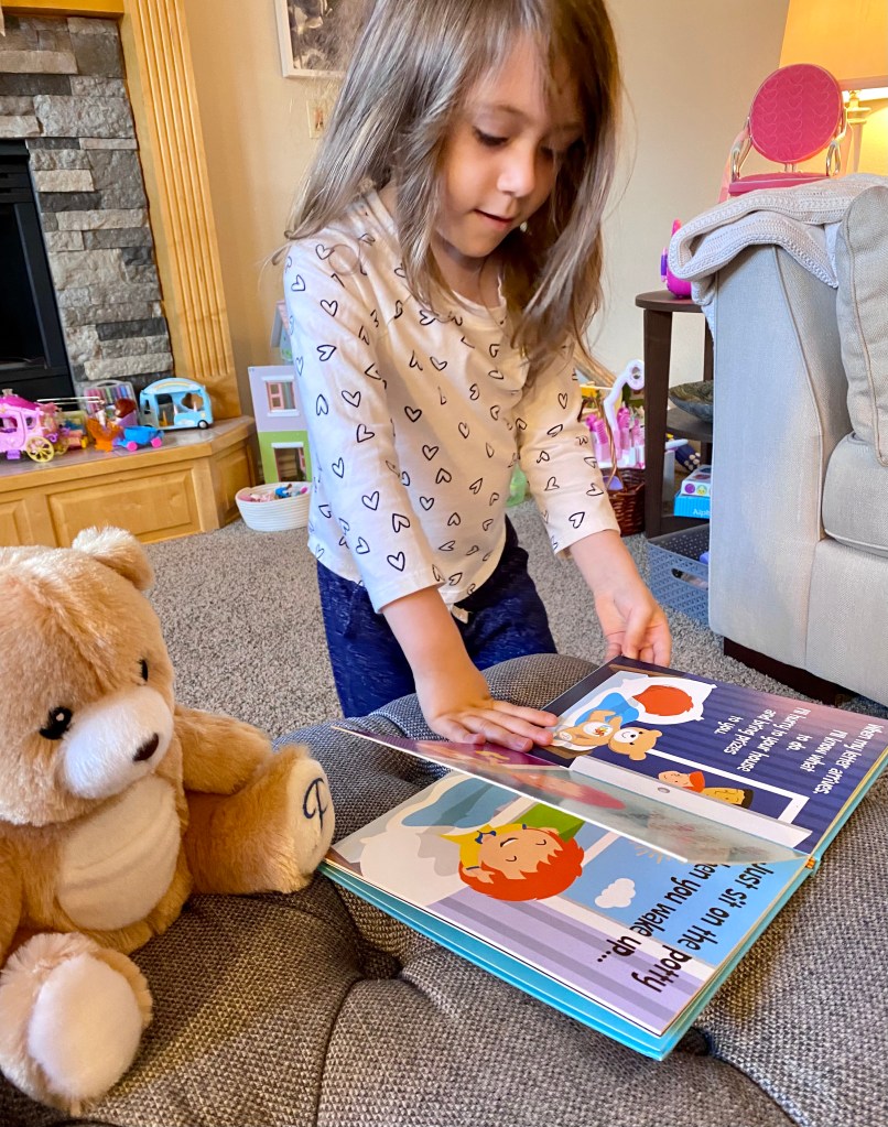 Here’s how we did it: We read the book to Clara while she sat on the potty, talked about Pinky Bear with her and when she was finished – we brought them together. Video disclaimer: kindly ignore our 90’s Olive Garden wall paper and my gaggy, overly excited voice. I can’t help it.