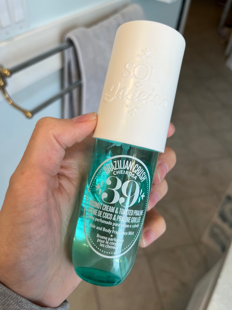 Allow me to introduce you all to my signature summer scent! I just bought this not long ago, and am already over 1/3 of the way through the bottle. If you want to smell like an absolute snack, go get you some of this. The website says this smells of “young green coconut cream, tropical orchid, and toasted praline”, which I do agree with. The combination of sweet coconut with the soft floral and that unmistakable Sol de Janeiro toasted praline is just *chef’s kiss*.