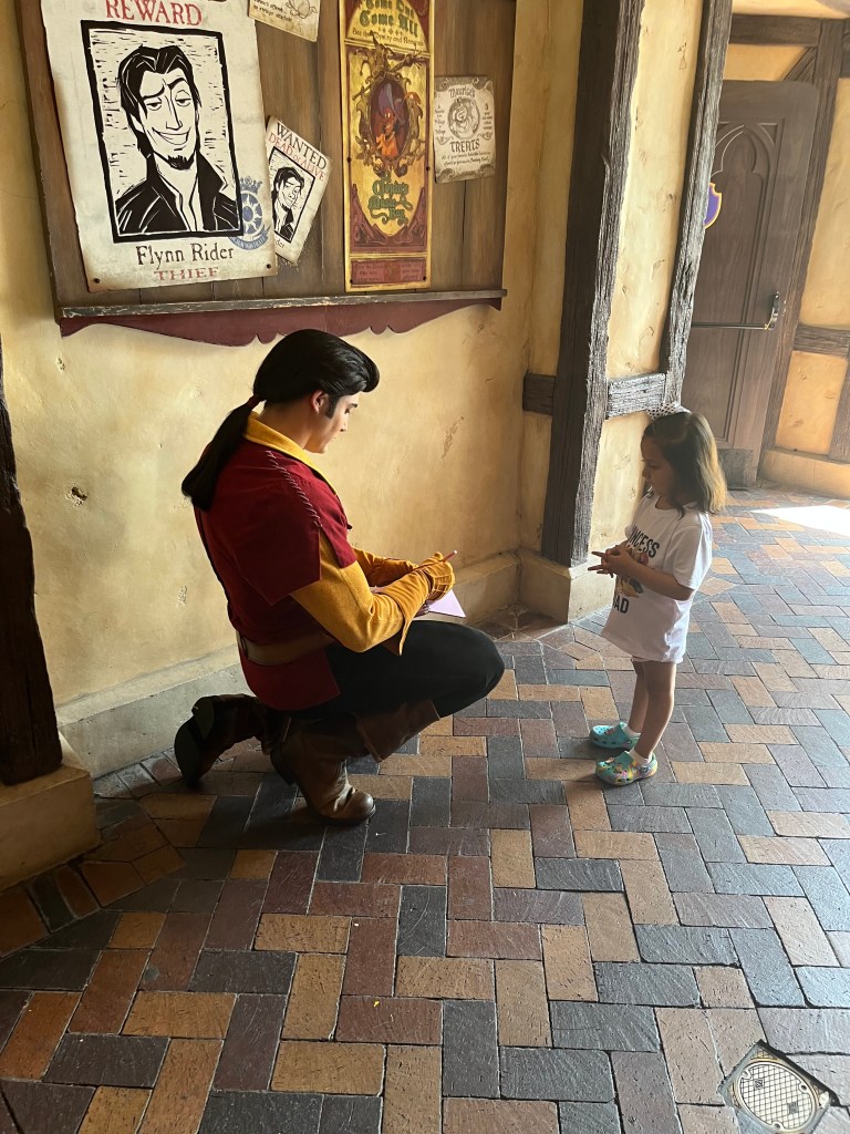 ALSO! We saw Gaston! We did not get to meet him, but as we walked by I said “Hi Gaston!” to which he replied “Bonjour! Have you seen my bride-to-be, Belle?” OH GASTON.