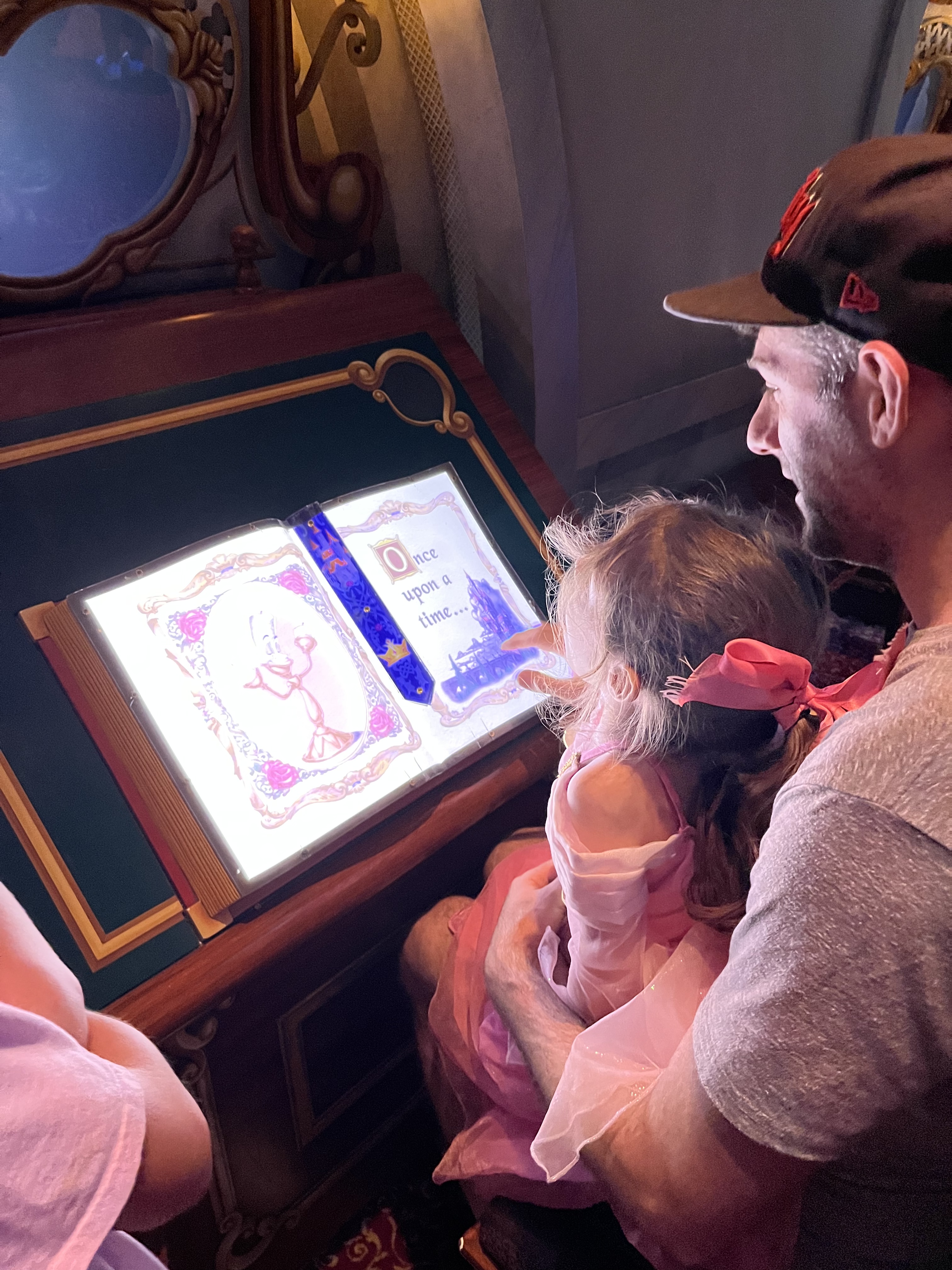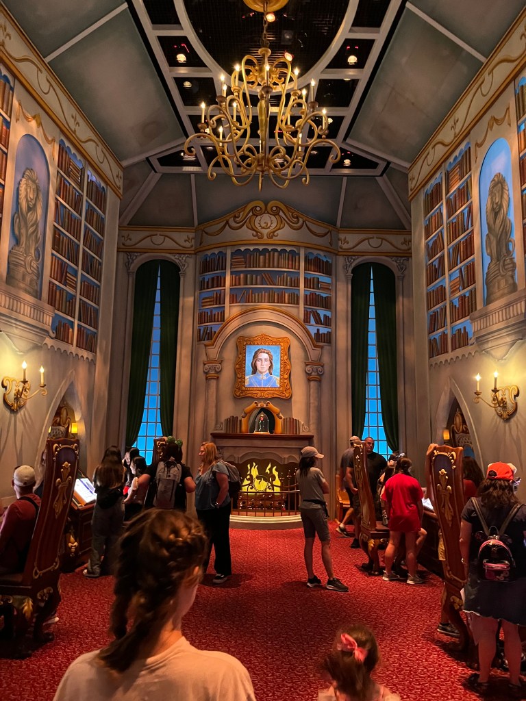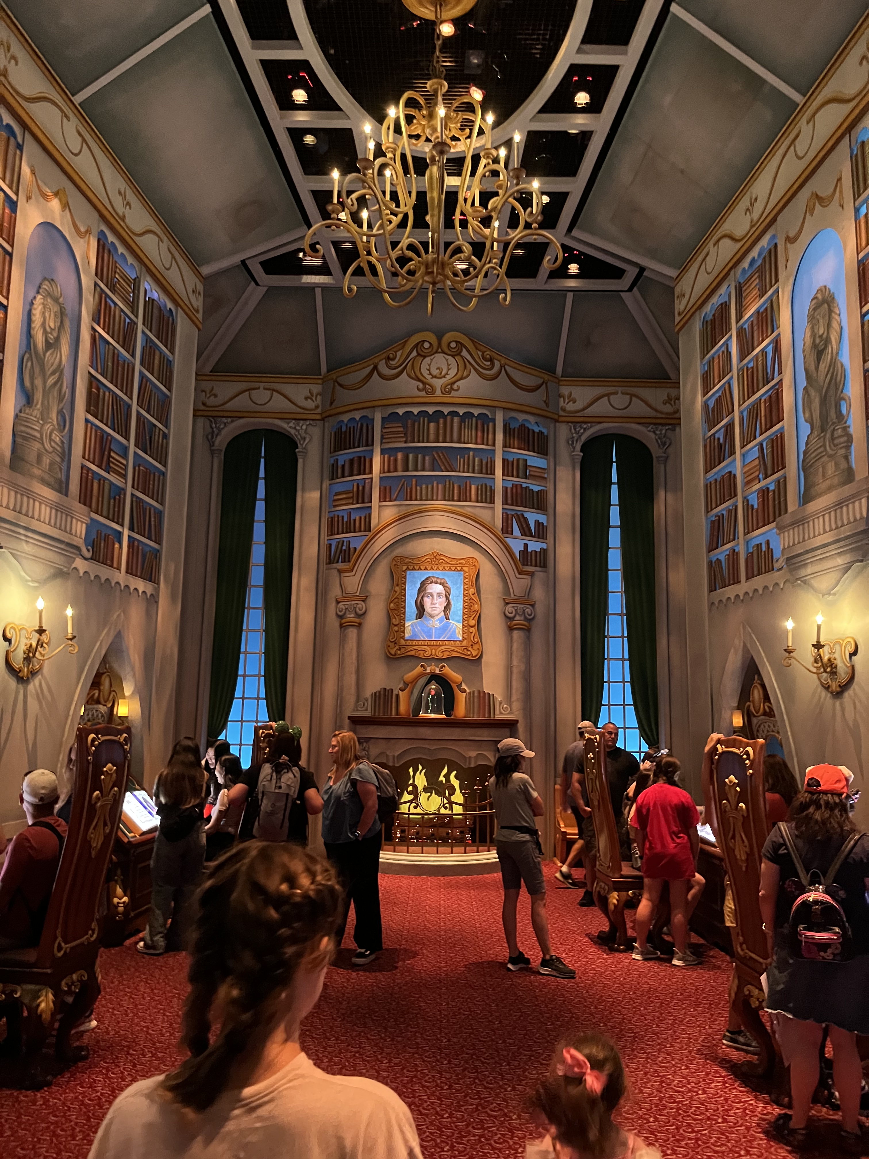 We also happened upon the Sorcerer’s Workshop in the animation building. YOU GUYS. If you have kids, you MUST find this. Inside, there is a whole room that looks like the Beast’s library. It is SO cool, and they have little interactive stations. There is also a whole giant room where they play clips from Disney movies. The other bonus of this room is the fact that it is dark and has strong A.C, so there were several families in there with strollers letting their kids nap. How genius!