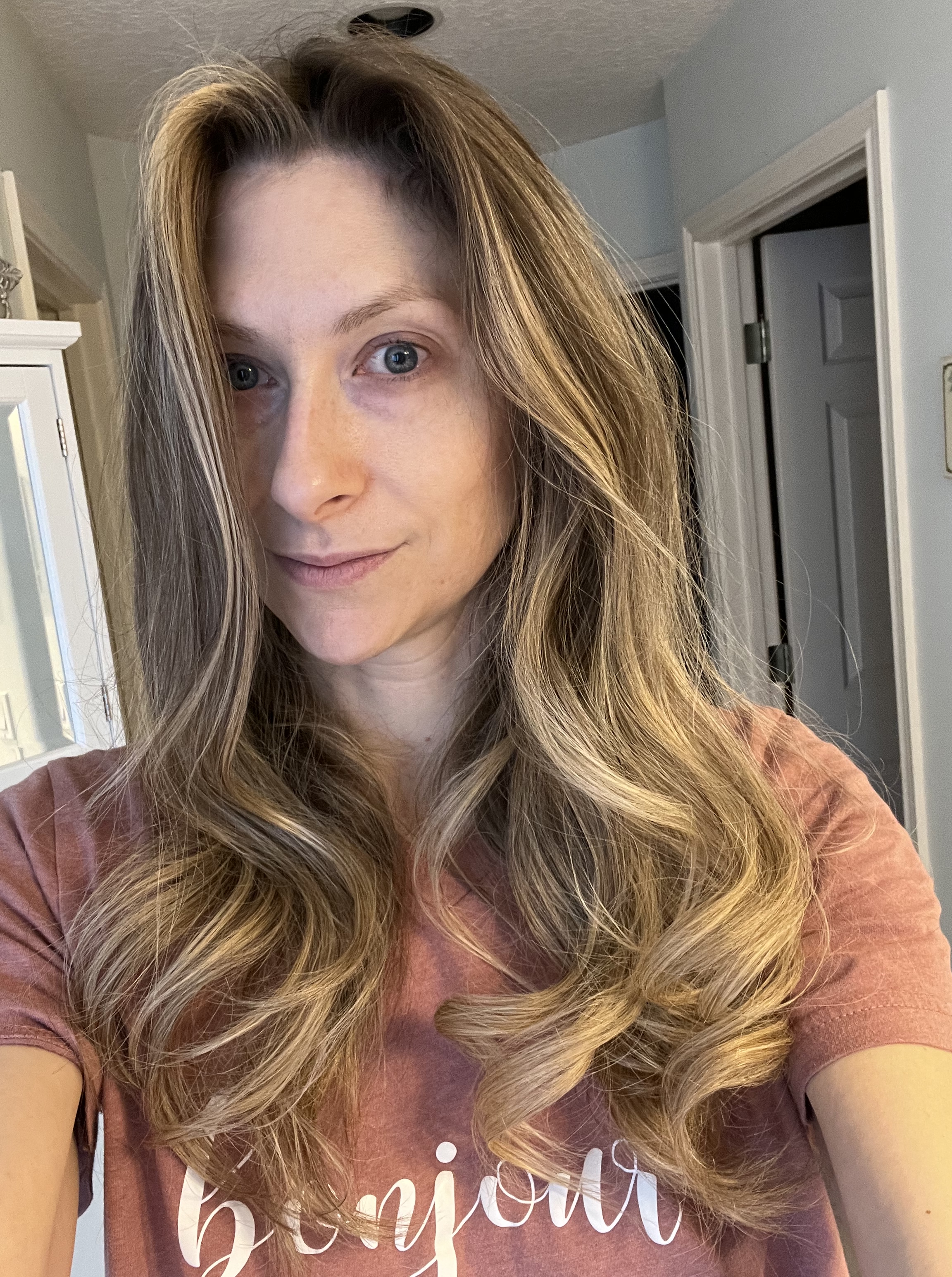 A few months ago while scrolling TikTok, I happened upon a new-to-me overnight curling method that promised to deliver the perfect 90’s blowout sans heat and guys – it actually works. I will link it here for your viewing pleasure. You’ll also need 2 insanely cheap Amazon products to achieve this (curling rods and a satin bonnet). You’ll also need 2-3 individual crew socks.
