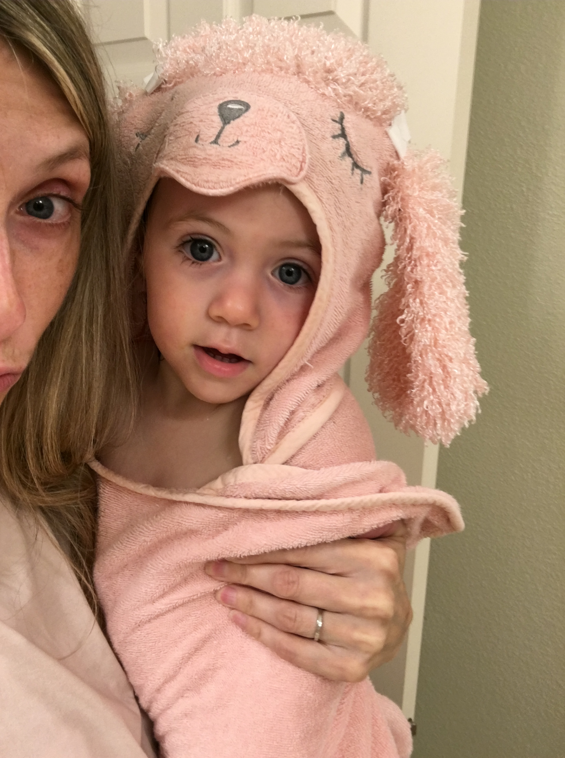 Guys. I am not one to match with my kid. In fact, this is the first mommy+me matching we have ever participated in together. I always thought it a bit cheesy because really, the adult is never going to look as cute as the kid. However, these matching suits have my heart. Clara squealed when she noticed that they matched and THAT – changes everything.