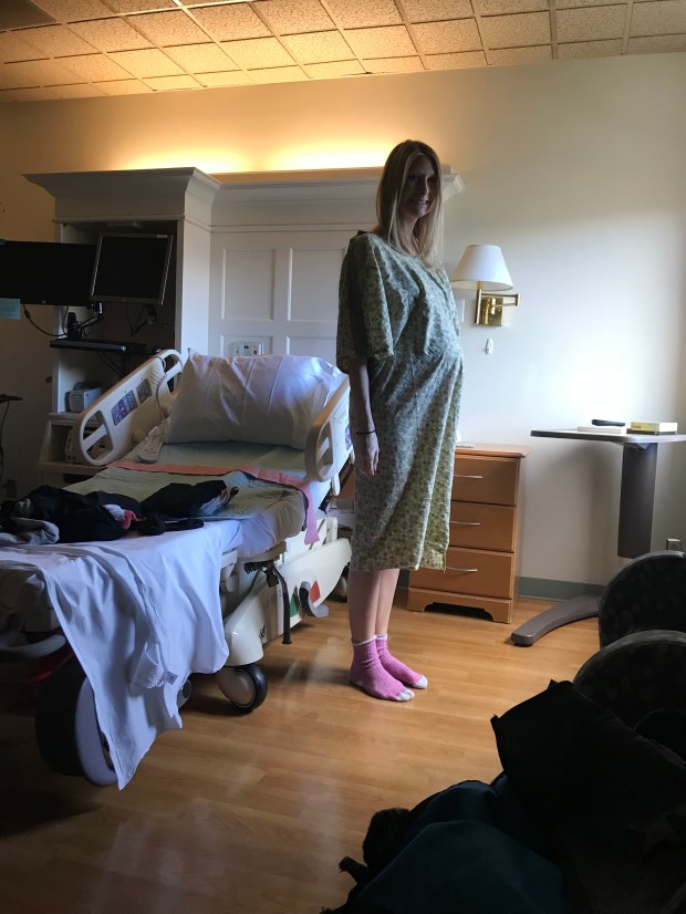 They checked us in as soon as we arrived and I was immediately clad in a hospital gown and they started IVs in both of my arms. I was given liquids and magnesium. The magnesium, they warned, might make me feel woozy or sick. It was administered in order to relax my body and warn off seizures which can happen with pre-eclampsia. We immediately began to go over my options. In several cases, a c-section may have been preferred to get the baby out as soon as possible but my case was unique in that my blood counts were so bad. My midwife and the doctor recommended a typical delivery and said in many cases, sometimes all it takes is an invitation. Also, my labs had revealed that my platelets had come up to 84 from 52, meaning that I could have an epidural. Most anesthesiologists will not do them below 80.
