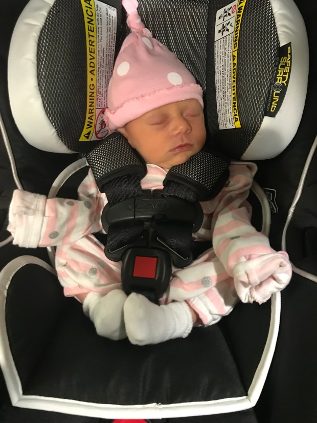 They wiped her off a tiny bit (at our behest) and set her directly on my chest. I couldn’t believe it. She was on me. Me. I HAD A BABY. The girl who still loves Hello Kitty and matching her eyeshadow to her outfit sometimes. The girl who dances awkwardly similar to Eliane Benes. The girl who still gets lost in her neighborhood, after almost 2 years. ME. I am her mom. Holy t*ts. I did not feel one singular emotion, instead all of them mixed together in this overwhelming, wonderful concoction. I did not cry (still dehydrated) but was definitely deliriously happy. She was here!