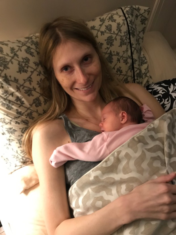 At this point, I was taken to the ICU where I spent a couple of days being very closely monitored. I had wires, tubes and monitors attached to basically every appendage including my feet. When I finally came to, a nurse from L&D introduced me to the ICU nurse who was taking care of me. They sort of explained what had happened and that the most important thing for me to do was rest, which was why I was in the ICU. David came in with the baby at one point and the L&D nurses kept coming down to check on me as well, but I was very lonely. I wanted to see my daughter and husband. The next day I finally got to leave the ICU and head back up to the 5th floor to the maternity ward to be with David and Clara. Seeing their faces again was total bliss.