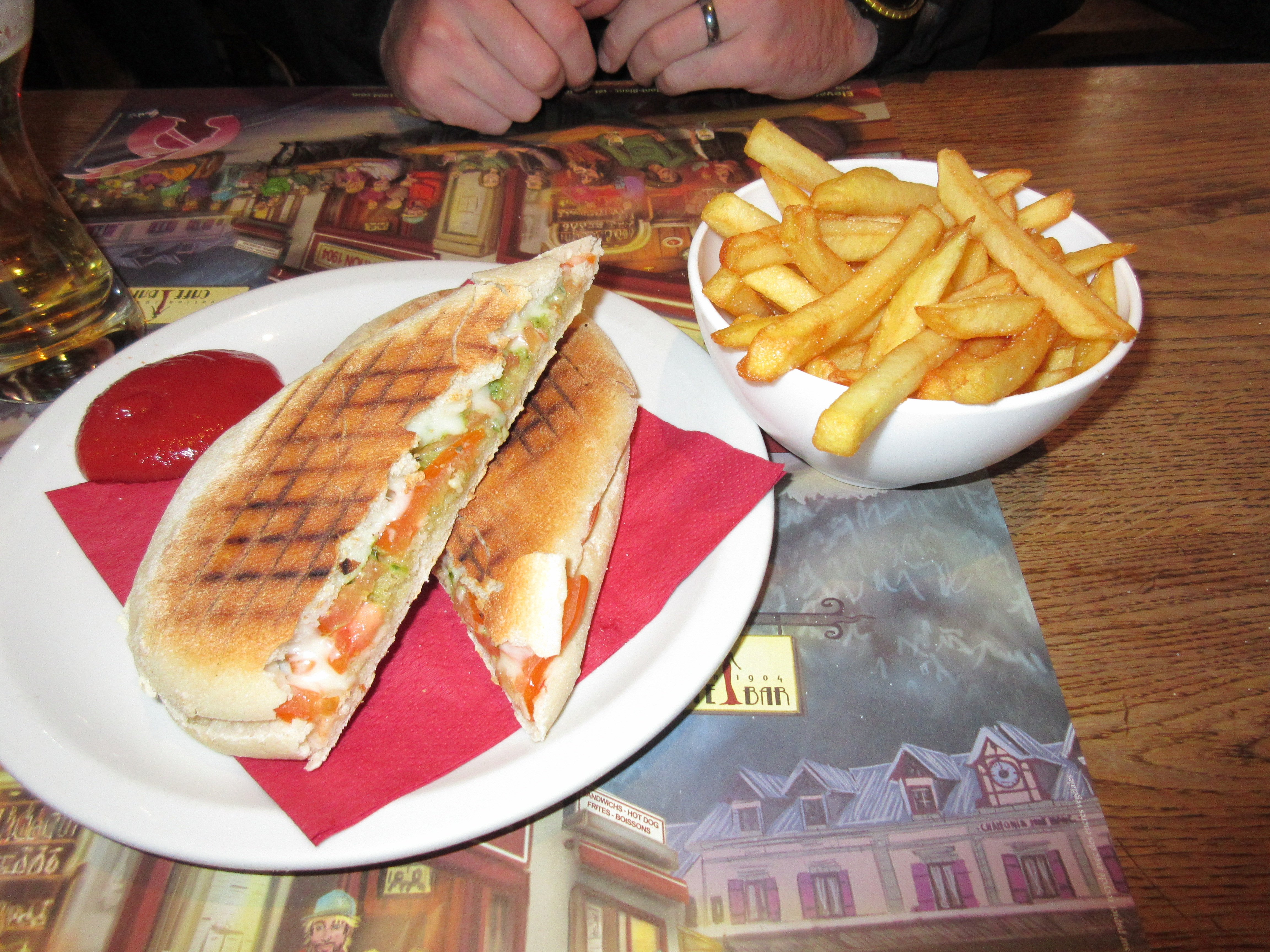 Upon arriving in Chamonix we immediately found a petit cafe (get used to me using French where I can here, folks) and ordered a cheesy, delicious hot sandwich with pomme frites!