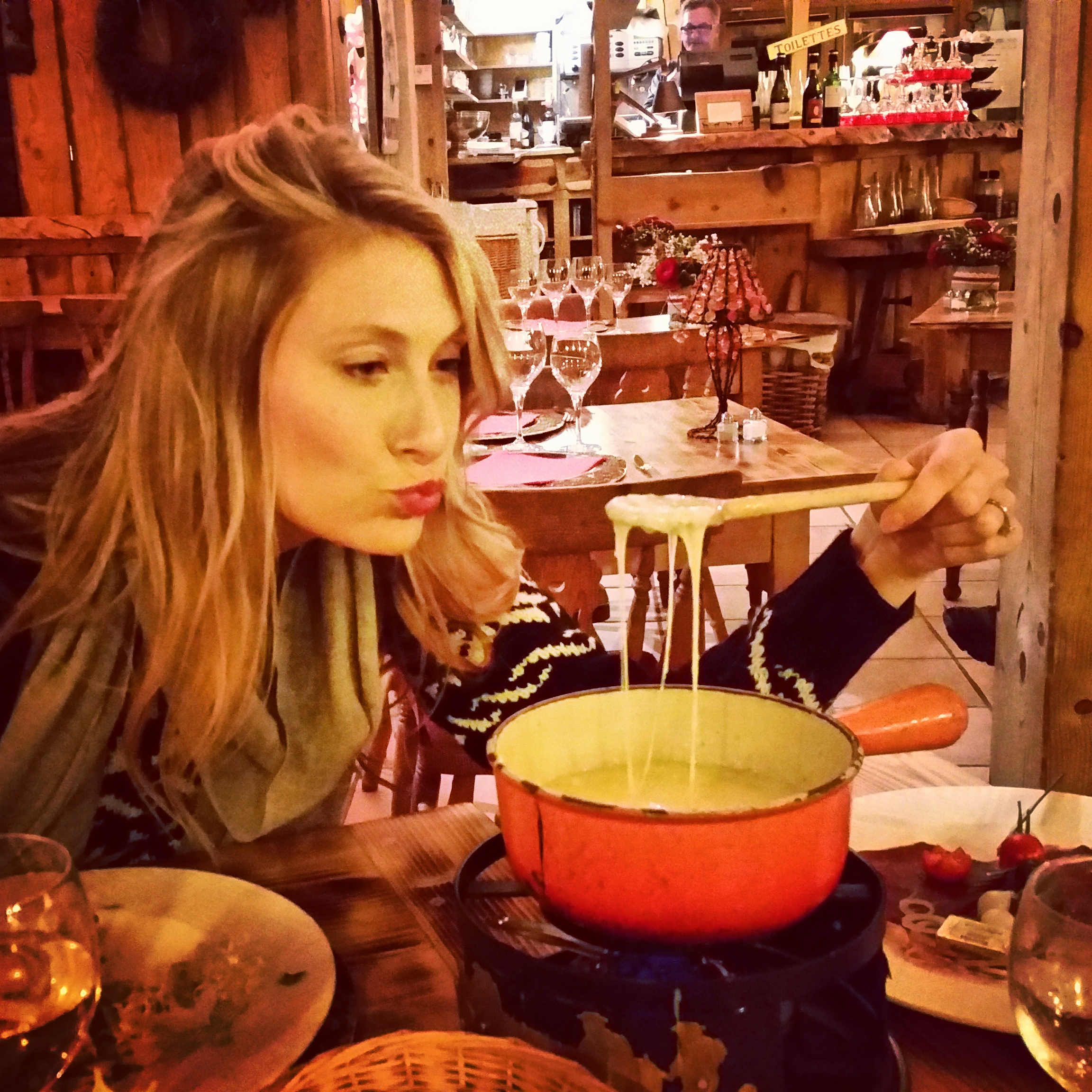 We went to the cutest little restaurant in Vallorcine (one of like, three restaurants) and ordered fondue, a goat cheese salad and wine, obvi.