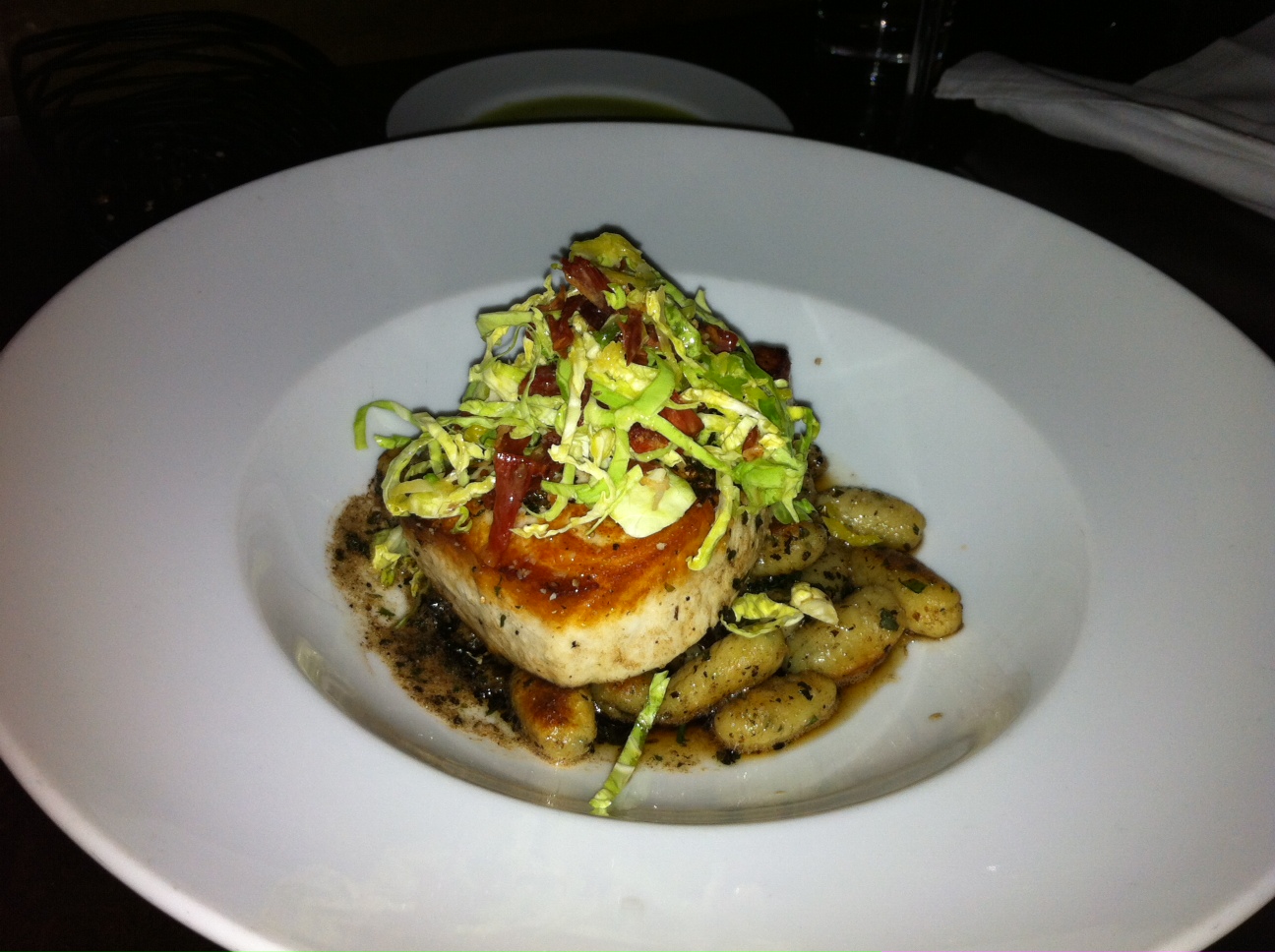 sage infused gnocchi, crispy prosciutto and brussels sprouts salad, capers, lemon and brown butter